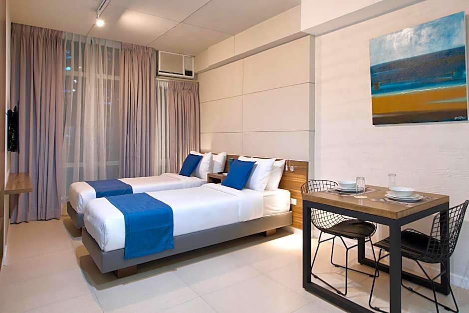Studio is 269 square feet and includes either a queen-size bed 150-154 width or 2 single beds 80-130 width plus desk, cable tv, hairdryer, tea and coffee making facilities , ironing set, safe, bathrobes, and slippers and is Wheelchair-accessible.
