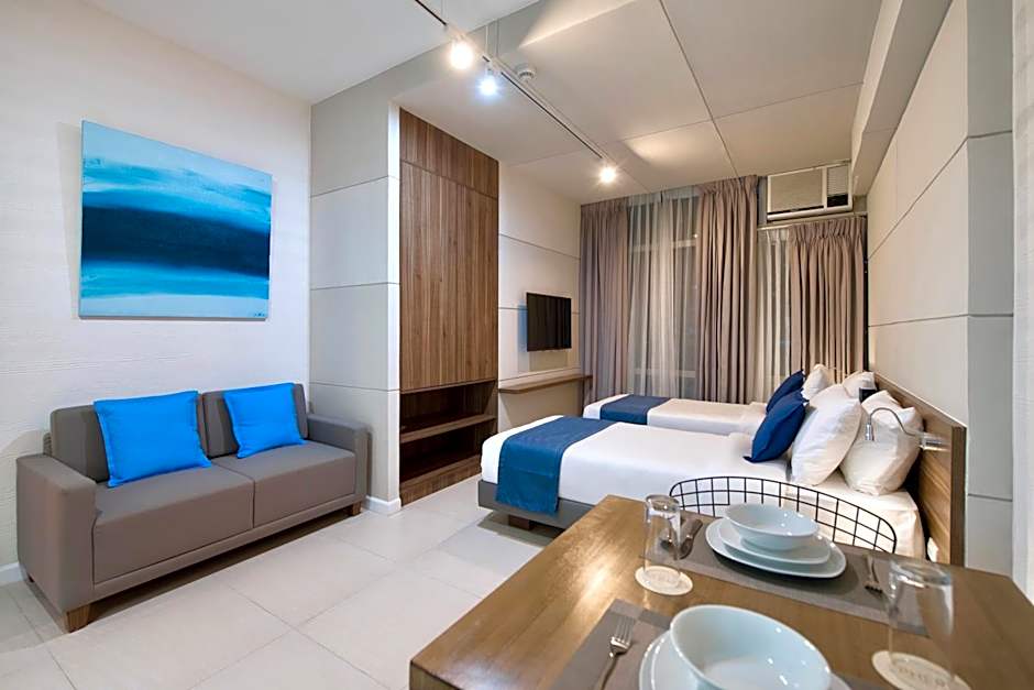 Studio is 269 square feet and includes either a queen-size bed 150-154 width or 2 single beds 80-130 width plus desk, cable tv, hairdryer, tea and coffee making facilities , ironing set, safe, bathrobes, and slippers and is Wheelchair-accessible.